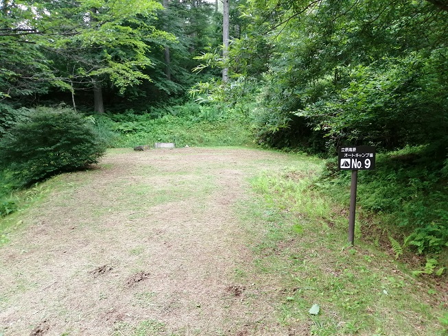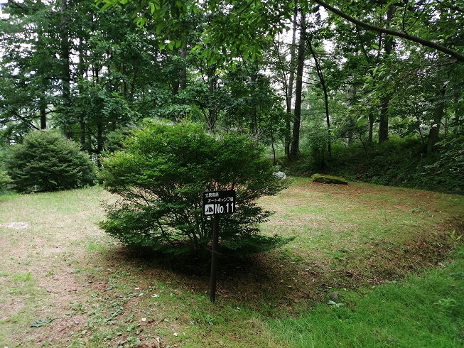 9番・10番・11番サイトも広さは十分あります。テントのサイズにもよりますが、5人用テントなら2張りは余裕で張れそうな感じです。
