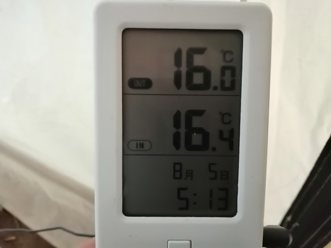 設営が終わり、昼食のカップラーメンを食べた後に温度計で気温をチェックすると「23.1℃」と下界に比べ10℃以上も低いことに驚きました。これなら夜はぐっすり眠れそうです。
