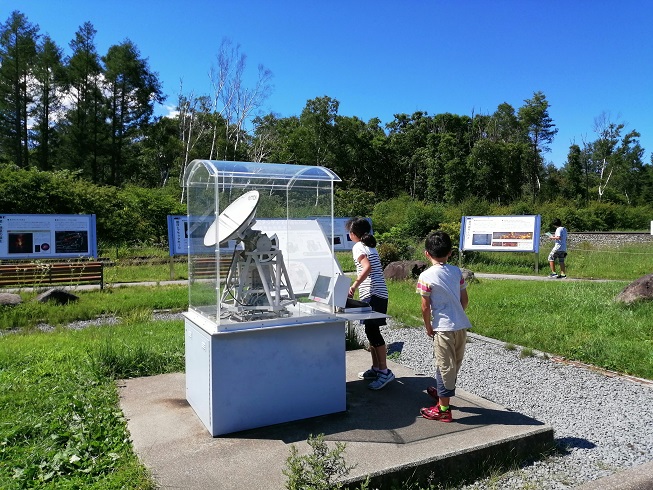 ミニアンテナを操作して宇宙からの電波をキャッチする事ができる展示物ですが、壊れているようで、電波をキャッチすることはできませんでしたが、動くアンテナの操作で子供たちは大興奮。