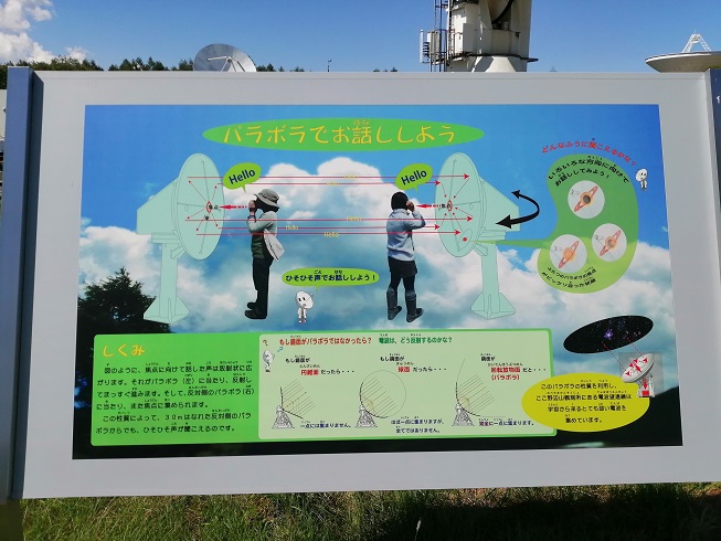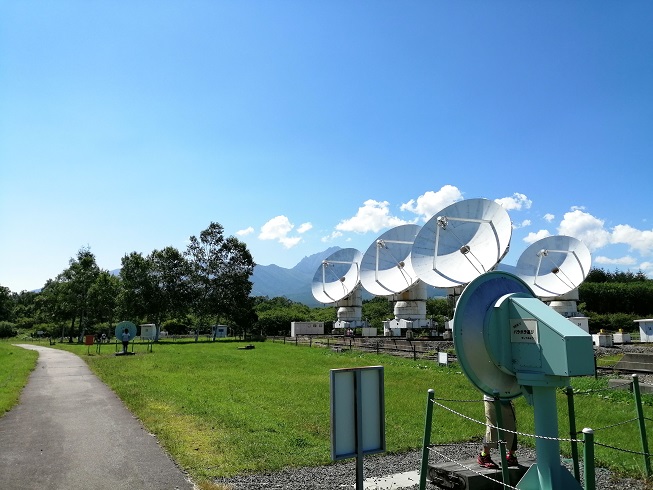 宇宙に向けられた電波望遠鏡で数々の観測を行っている場所で、自然科学研究機構 野辺山展示室では4次元デジタル宇宙シアターを見る事ができます。