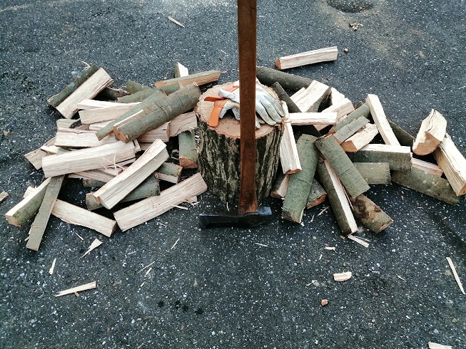 使っている斧は「ハスクバーナ クサビ打込用薪割り 斧」と言う楔も打てる万能斧で硬い木を薪にするのに最適な斧だと思います。
