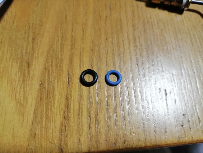 黒が購入してきた水道用Oリングで、青が取り外した純正のOリングです。