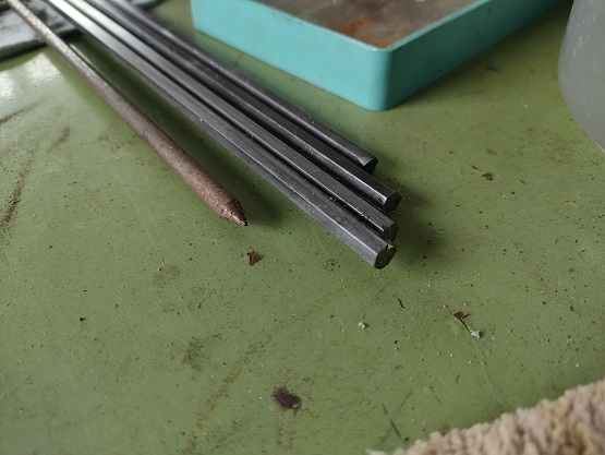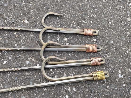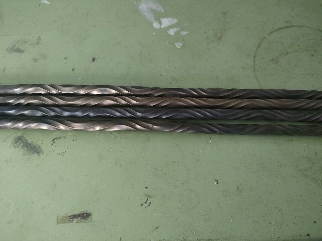 丸棒でも全然問題ないのですが、ここ数年ツイスト加工にはまっているので、今回は鉄の六角棒でツイスト加工を施して作製することにしました。