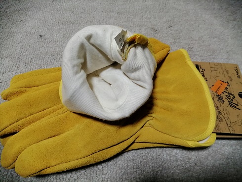 今回、焚き火手袋をGETできましたが、個人的には「牛床皮パワフルガード、皮手」が299円で買えたので大収穫でした。