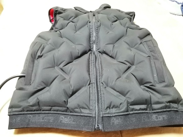 ベストの左側に空気が入り大分ふっくらしてきました。この時点では右側には空気が入っている感じはしませんでした。